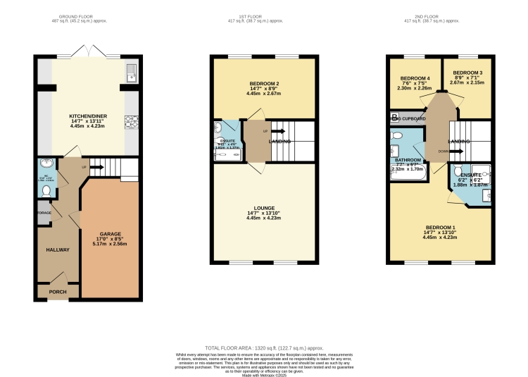 Property briefly comprises: Entrance Hall, Kitchen, Downstairs W/C, Stairs to First Floor Landing, Lounge, Bedroom, Ensuite, Stairs to Second Floor Landing, 3 Bedrooms, Ensuite, Family Bathroom, Rear Garden, Integral Garage, Front Driveway