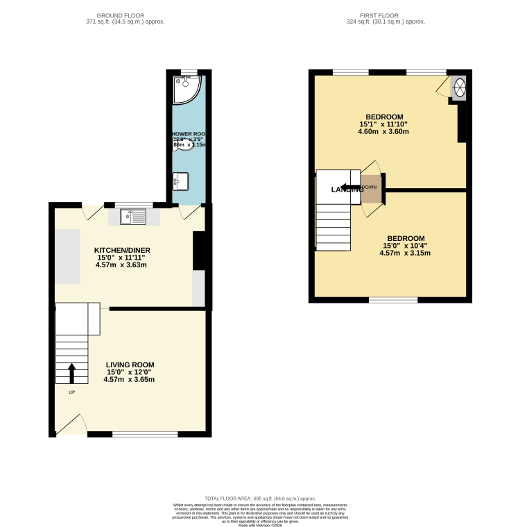 Property briefly comprises: Lounge, Kitchen/Diner, 3 Piece Shower Room, Stairs Leading to Landing, 2 Double Bedrooms, Rear Garden.