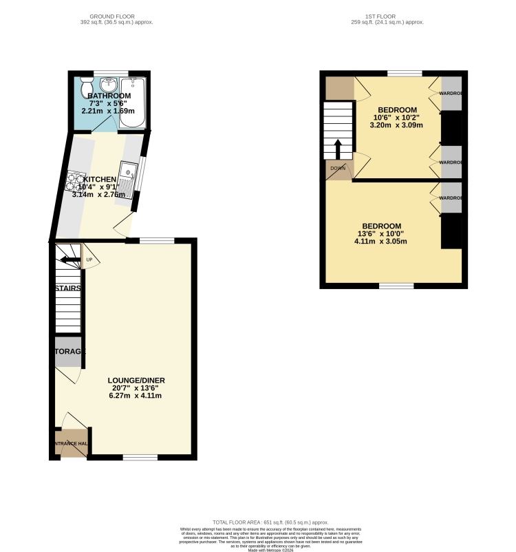 Property briefly comprises: Entrance Hallway, Lounge Diner, Kitchen, Downstairs Bathroom, Stairs leading to First Floor Landing, 2 Double Bedrooms, Rear Garden with Shed